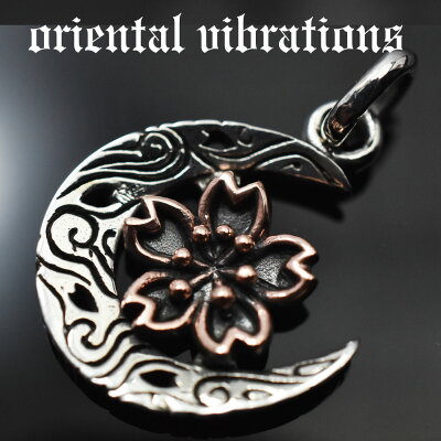 oriental vibrations/オリエンタルバイブレーションズ≪和柄 朧月夜 三日月と桜 クレセントムーン チャーム ペンダントトップ≫縁起物/スターリングシルバー/純銀/Silver【925】/カッパー/銅/ネックレス【楽ギフ_包装】【メール便可】